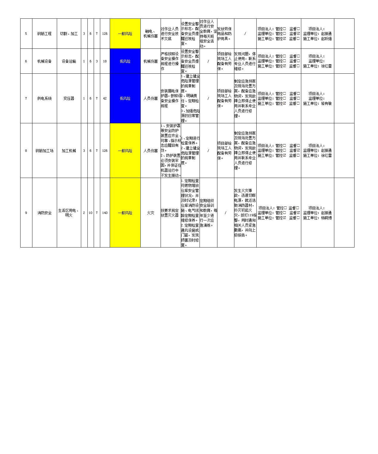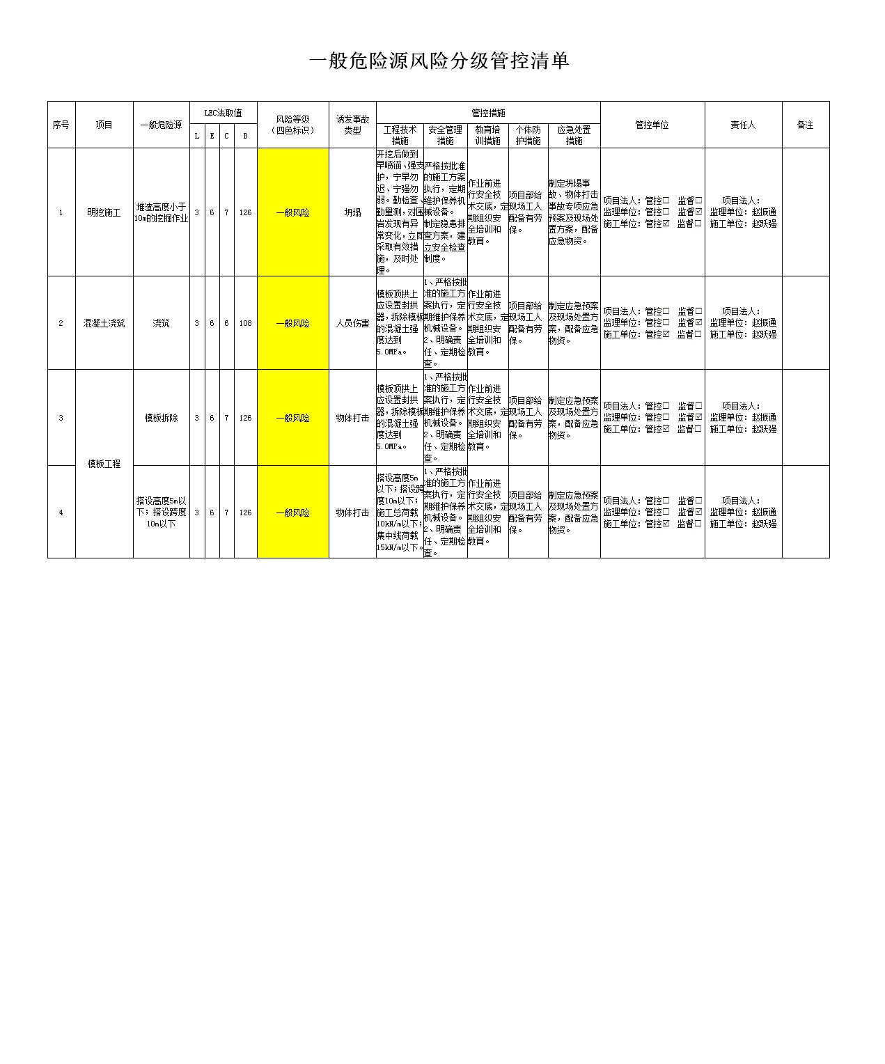 2024年二季度在建項(xiàng)目安全風(fēng)險(xiǎn)分級(jí)管控清單(小浪底南岸灌區(qū)工程施工7標(biāo))