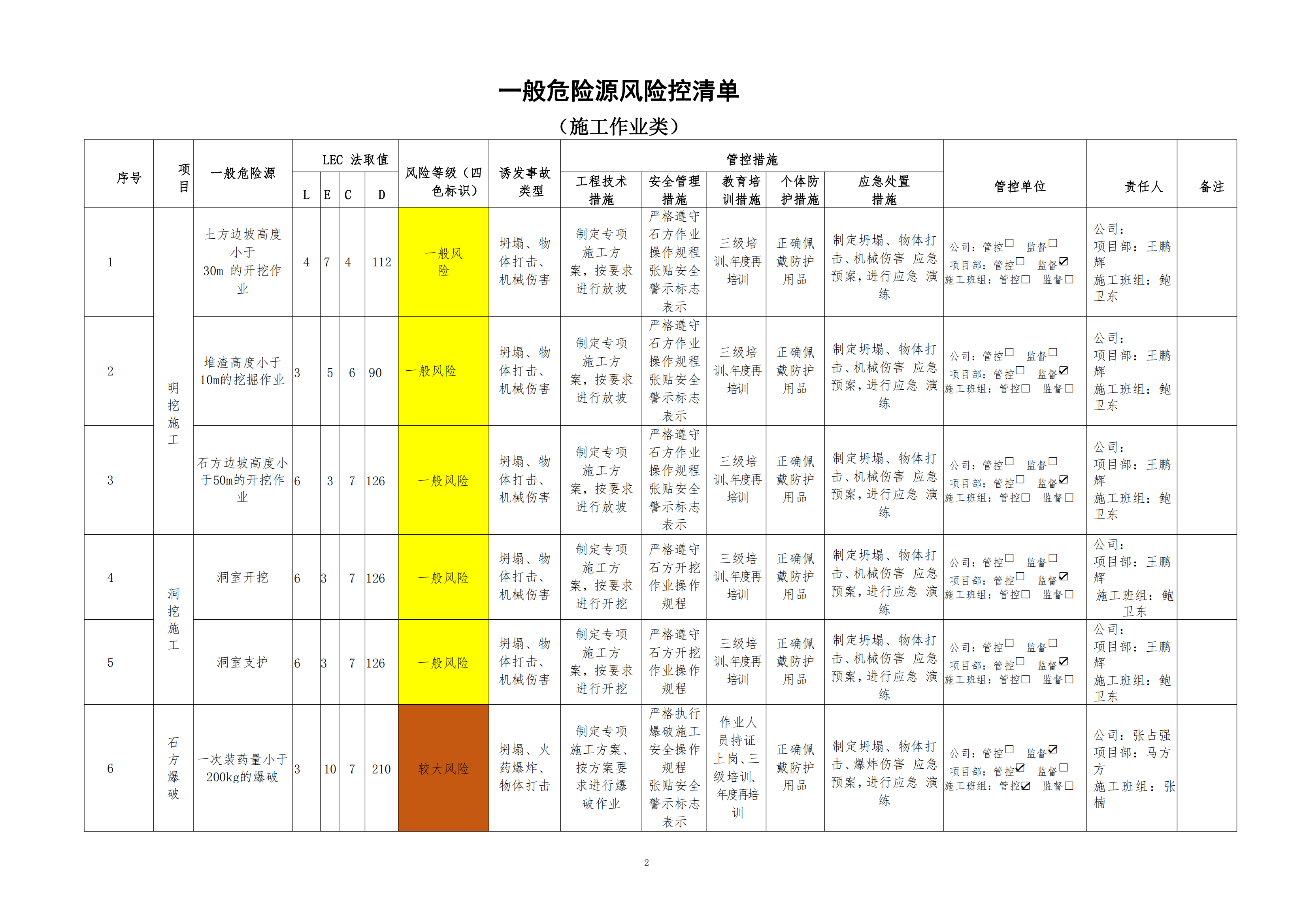 欒川縣新建水庫一期工程施工一標(biāo)段危險(xiǎn)源風(fēng)險(xiǎn)分級管控清單(7月)