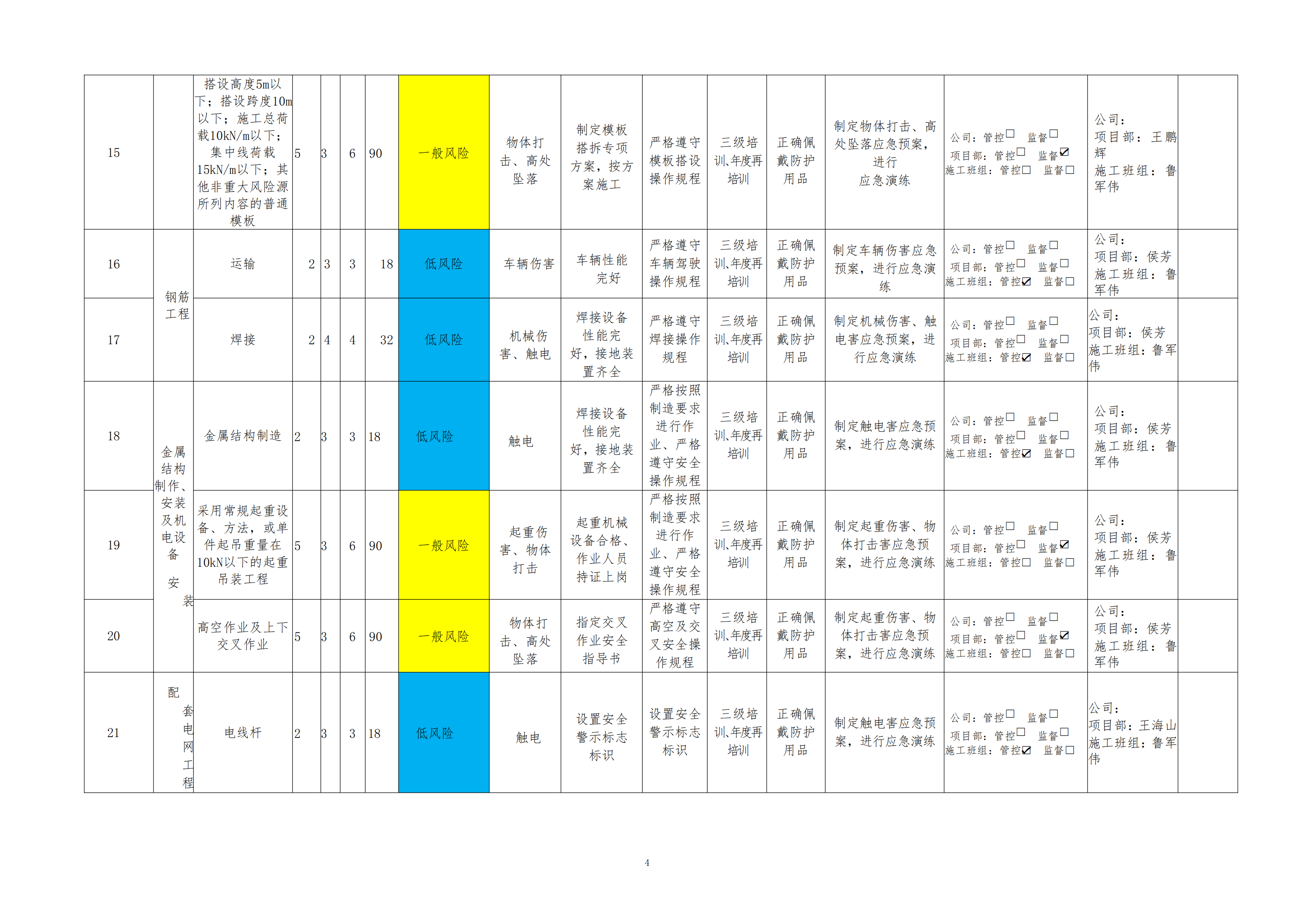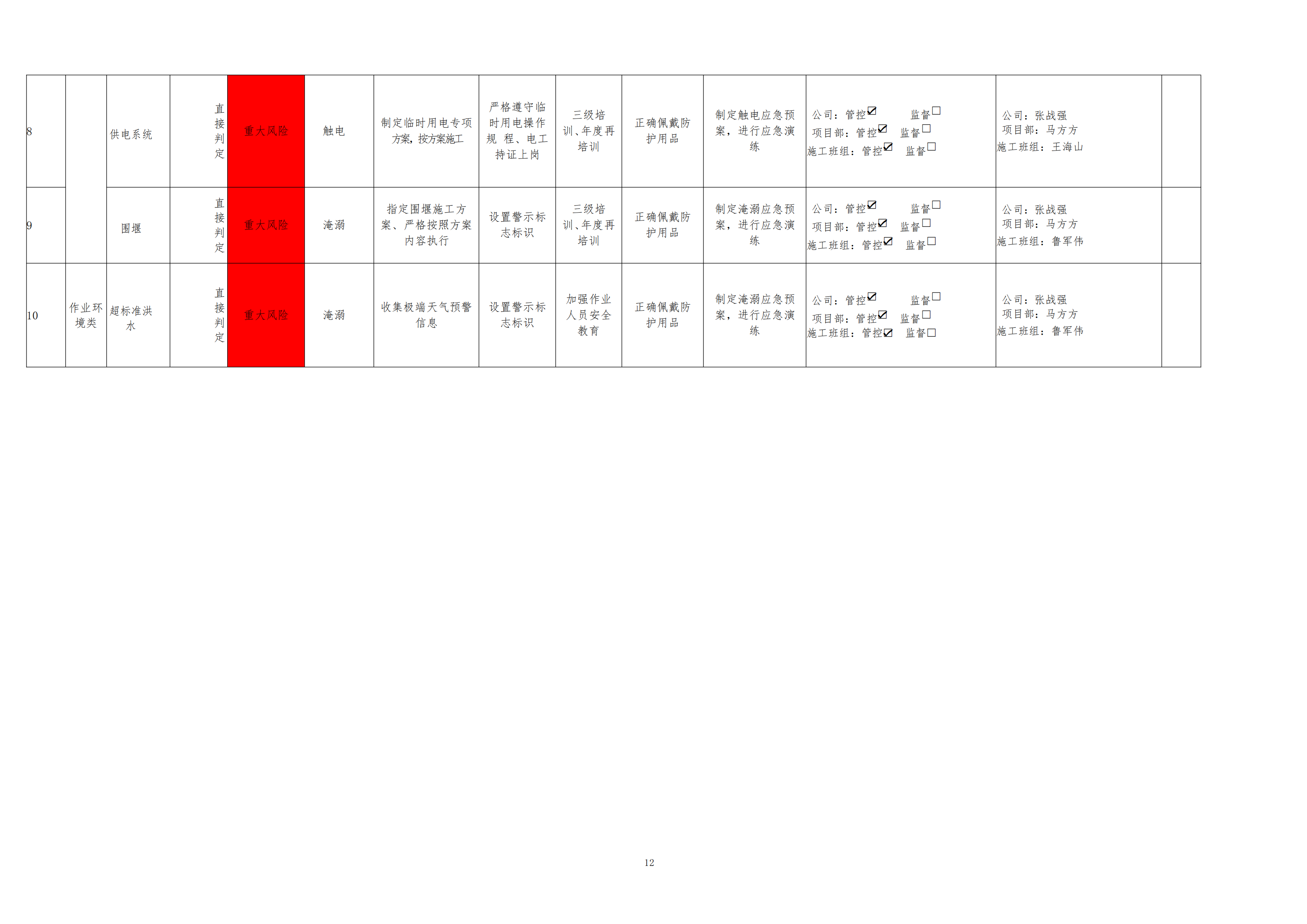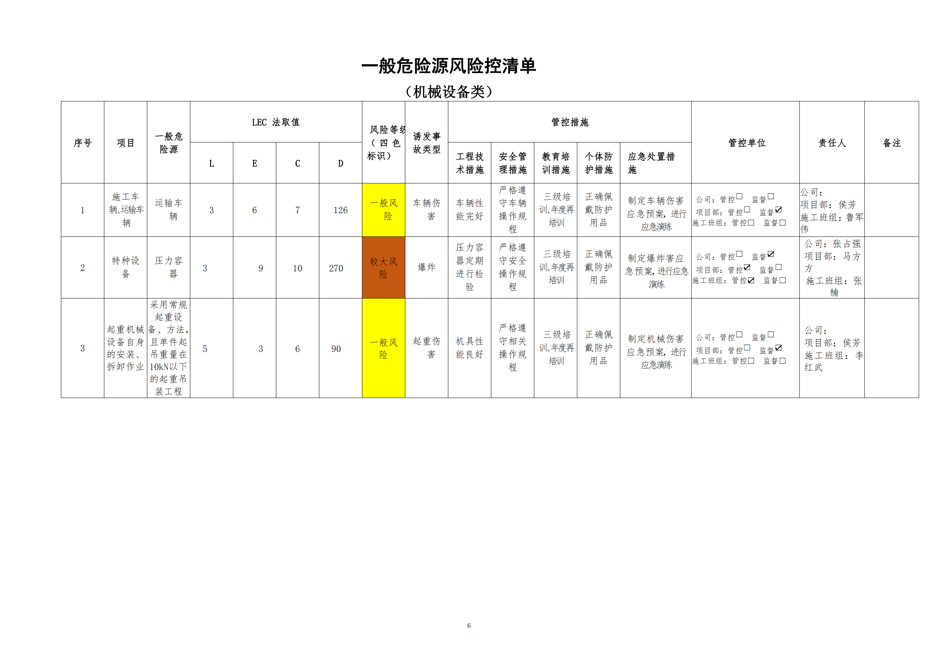欒川縣新建水庫一期工程施工一標段危險源風險分級管控清單(10月)